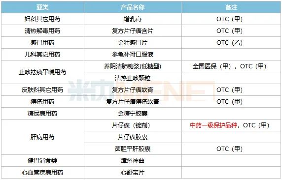 表1:片仔癀旗下獨(dú)家中成藥