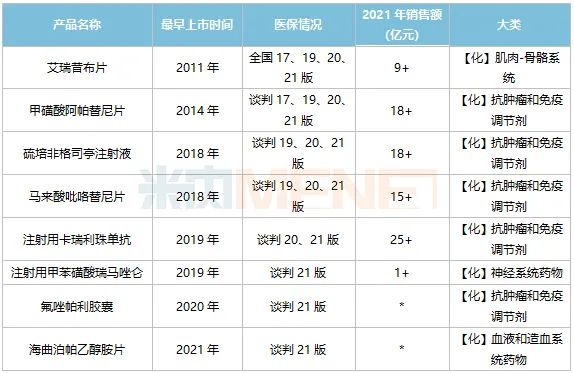 2019年獲批的注射用卡瑞利珠單抗是目前恒瑞最暢銷(xiāo)的創(chuàng)新藥,2020年進(jìn)入醫(yī)保談判目錄后,2021年銷(xiāo)售額漲至25億元;而同樣在2019年獲批的注射用甲苯磺酸瑞馬唑侖,進(jìn)入2021版醫(yī)保談判目錄后,當(dāng)年銷(xiāo)售額也漲至1.4億元。