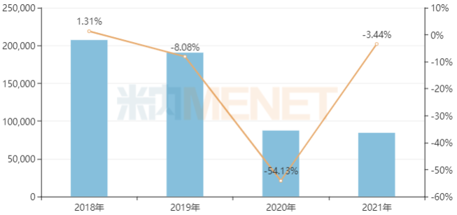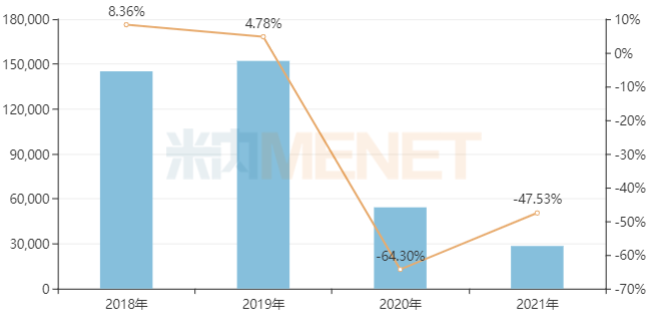 莫西沙星氯化鈉注射劑是第三批集采品種,也是首個(gè)納入集采的抗菌藥物注射劑。第三批集采執(zhí)行時(shí)間為2020年11月,莫西沙星氯化鈉注射劑在中國公立醫(yī)療機(jī)構(gòu)終端銷售規(guī)模2019年超過40億元,同比增長22.88%,2020年、2021年分別同比下滑13.23%、46.64%,2021年銷售規(guī)模接近19億元。
