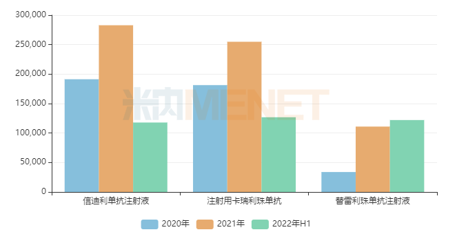圖2:三款國產(chǎn)抗腫瘤抗體藥物的銷售情況(單位:萬元)